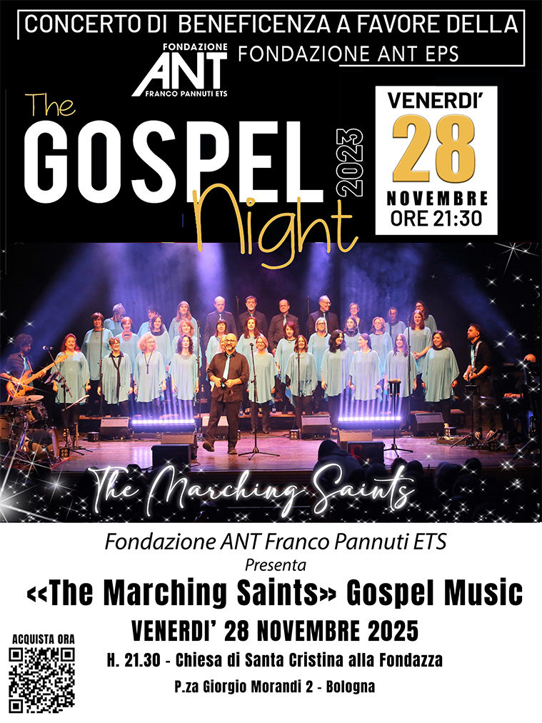 Proprio per questo, la ‘Gospel Night‘ di ANT intende celebrare assieme a tutta la cittadinanza l’inizio delle festività natalizie e offrire un’occasione speciale di incontro e condivisione, unendo cultura, musica e tutta la solidarietà incarnata dalle postazioni ANT presenti in sala, con i loro panettoni e pandori utili a raccogliere fondi per la prevenzione oncologica e l’assistenza specialistica domiciliare gratuita alle persone malate di tumore.