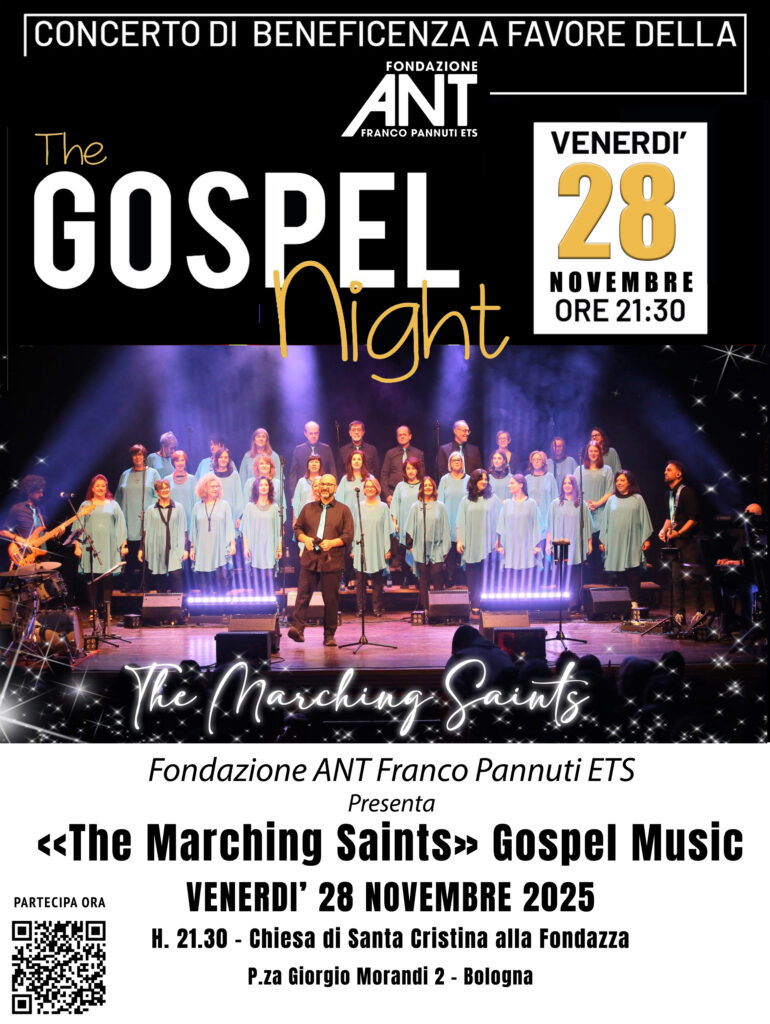 La tradizione afroamericana della musica gospel nell’interpretazione del coro di fresca formazione ‘The Marching Saints‘, nato a San Giorgio di Piano (Bo) e ora pronto a mettere i propri virtuosismi canori al servizio dell’assistenza e della prevenzione oncologiche gratuite di Fondazione ANT.