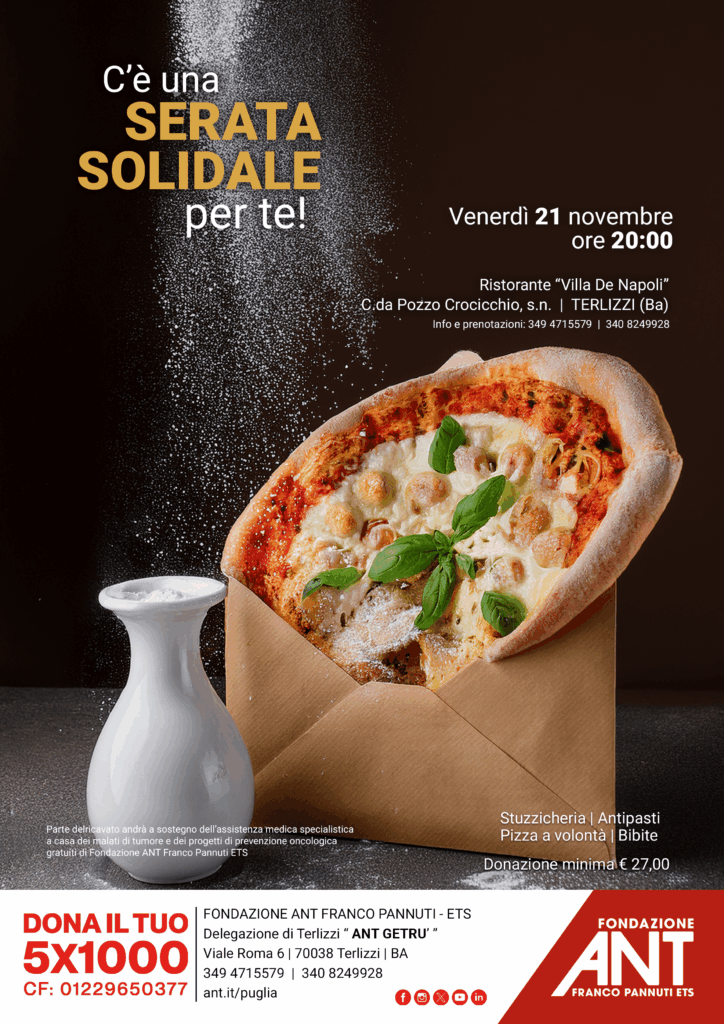 ๐ฝ๏ธ Ti aspettiamo per una serata speciale di solidarietร in favore di ๐๐ผ๐ป๐ฑ๐ฎ๐๐ถ๐ผ๐ป๐ฒ ๐๐ก๐ง, allโinsegna del buon cibo, della compagnia e della generositร .
