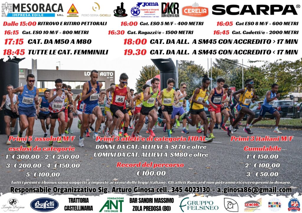 – gara competitiva con premi assoluti, di categoria e bonus per record del percors