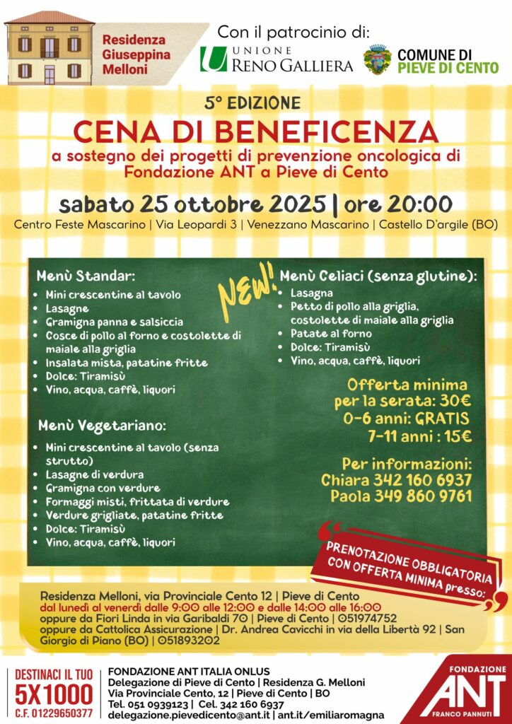 la Cena di Beneficenza a sostegno dei progetti di prevenzione oncologica della Fondazione ANT, giunta alla sua quinta edizione!