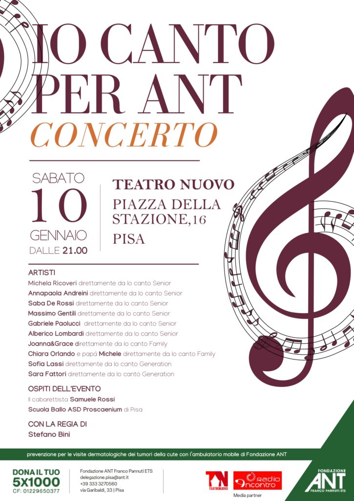 Sabato 10 gennaio, alle 21.00, il Teatro Nuovo di Pisa accoglierà una serata dedicata al talento, alla condivisione e al sostegno delle attività gratuite che Fondazione ANT offre sul territorio.
