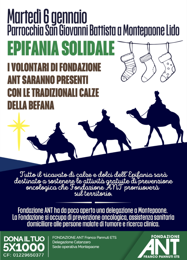 Tutto il ricavato di calze e dolci dell’Epifania sarà destinato a sostenere le attività gratuite di prevenzione oncologica che Fondazione ANT promuoverà sul territorio.