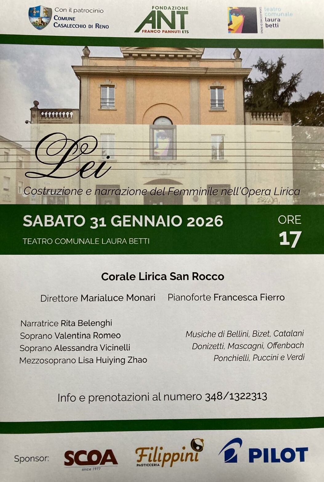 La Corale Lirica San Rocco, diretta da Marialuce Monari con Francesca Fierro al pianoforte, accompagnerà il pubblico in un percorso musicale con brani di Bellini, Bizet, Donizetti, Puccini, Verdi e altri grandi compositori. La narrazione è affidata a Rita Belenghi, con le voci soliste di Valentina Romeo, Alessandra Vicinelli e Lisa Huiying Zhao.