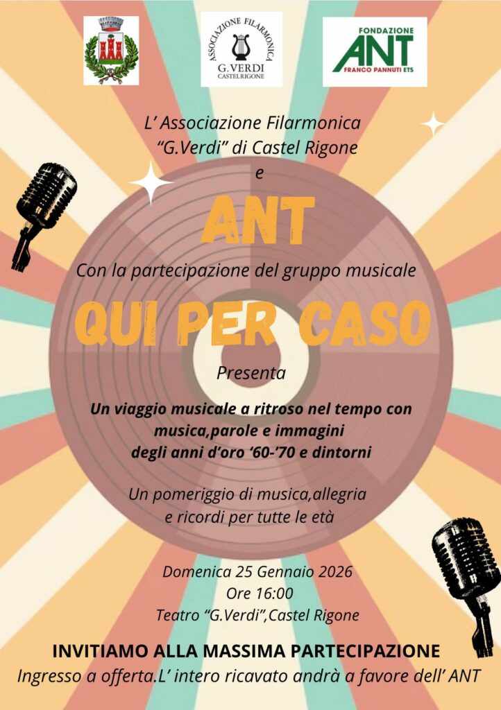 Domenica 25 gennaio 2026, alle 16.00, al Teatro G. Verdi di Castel Rigone andranno in scena i Qui X Caso per un pomeriggio in allegria con un viaggio entusiasmante fra i migliori pezzi di musica anni ’60 e ’70.