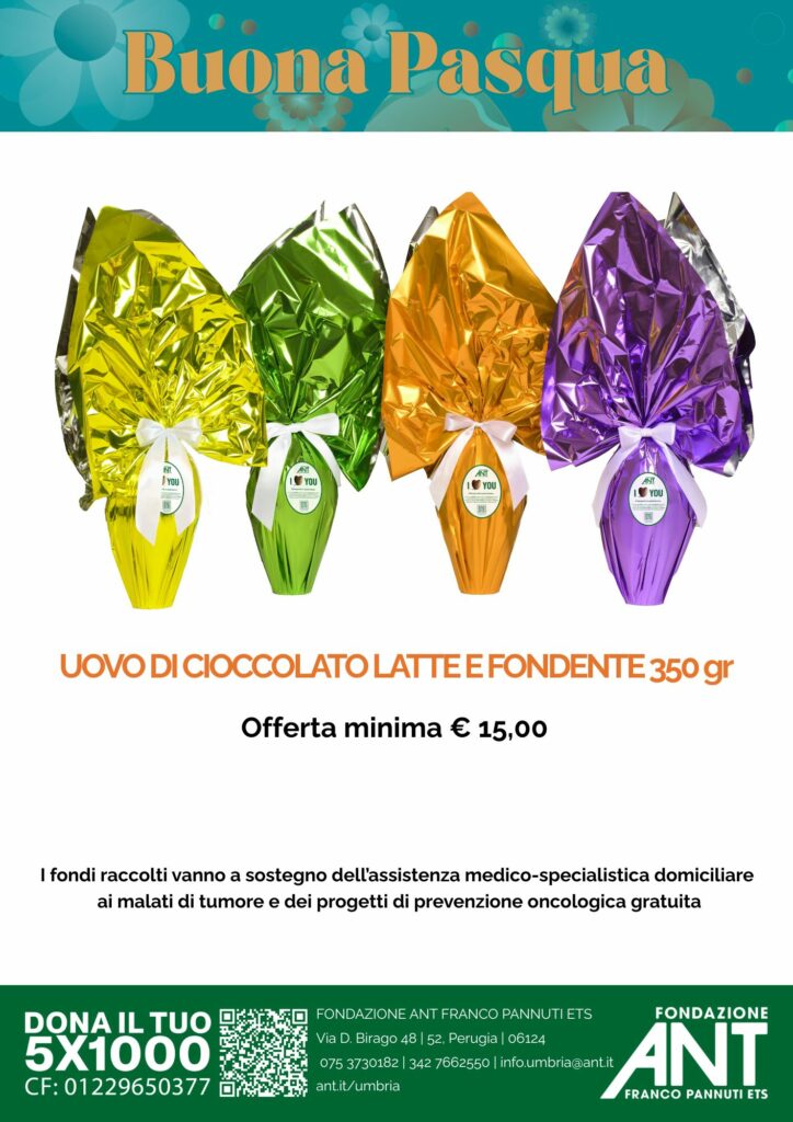 Queste sono alcune delle motivazioni che muovono l’intento di chiedere alle scuole umbre ospitalità per la campagna di Raccolta fondi delle uova di cioccolato ANT a sostegno di assistenza medico domiciliare ai malati di tumore e giornate di prevenzione oncologica.